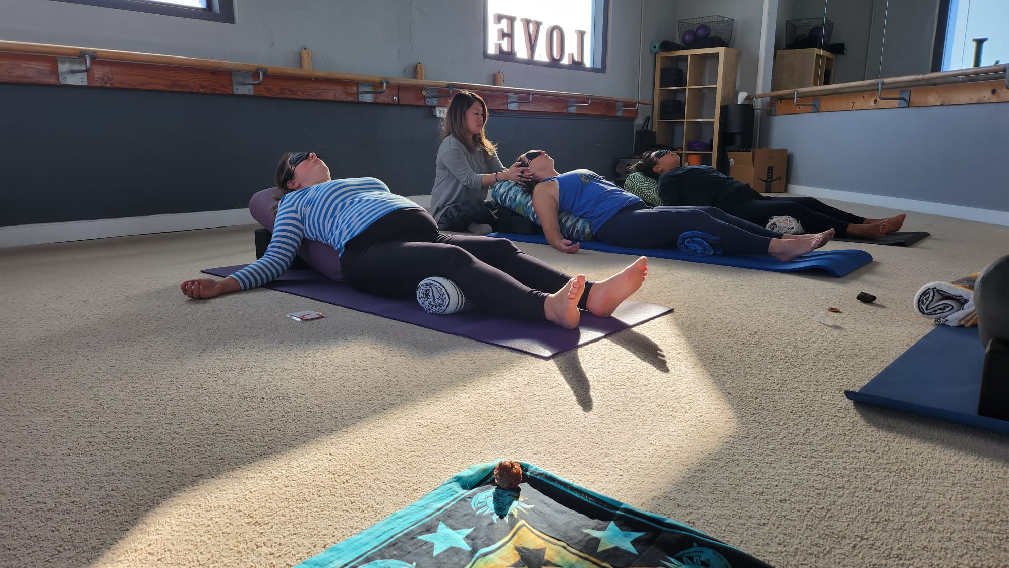 FOR MAXIMUM COMFORT, BE SURE TO BRING: a yoga mat, something to cover the eyes (an extra sock or washcloth will do!), a blanket and warm clothing and socks to keep cozy.